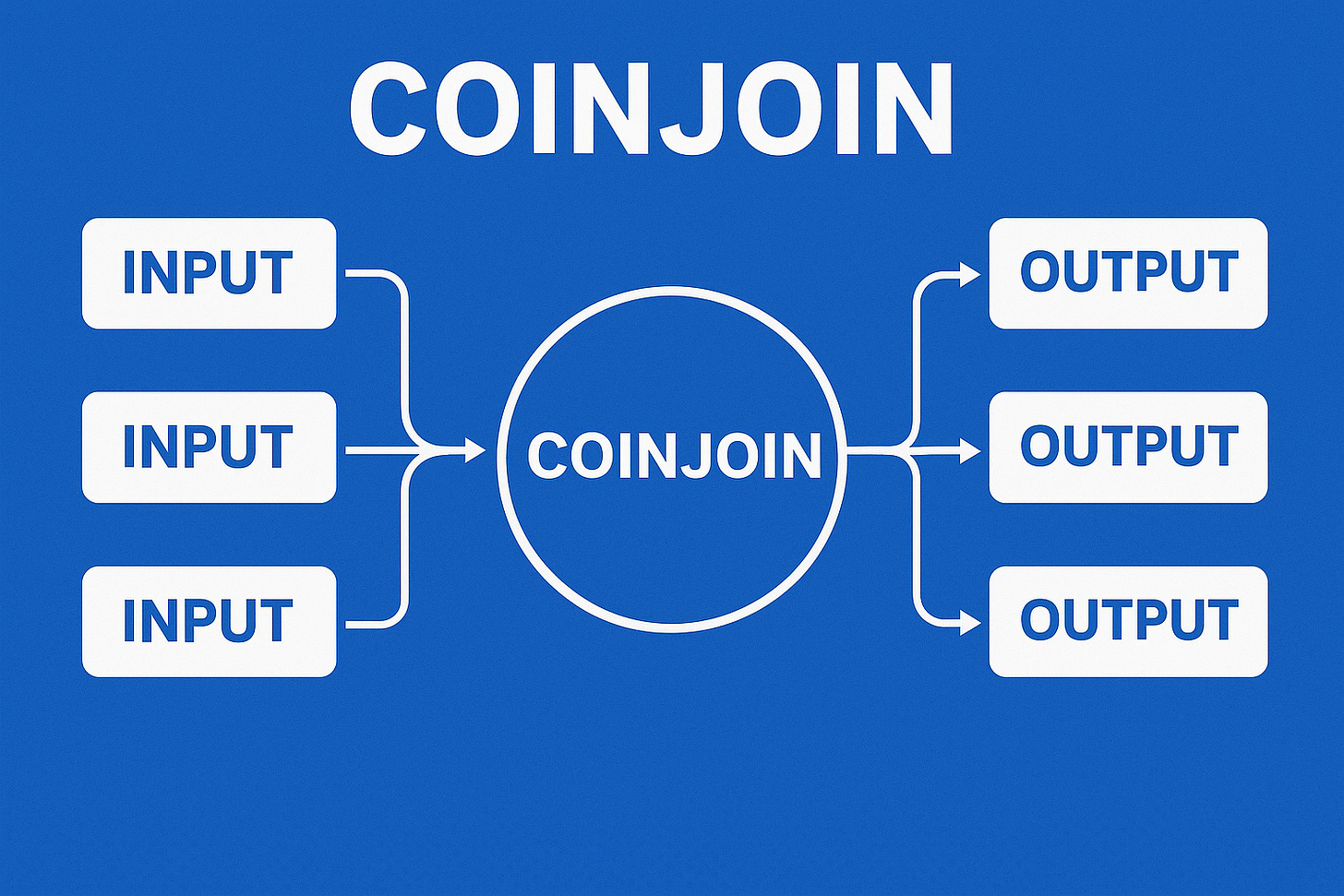 (Use the attached blue diagram illustrating inputs/outputs linked to “COINJOIN” — minimalist and educational.)